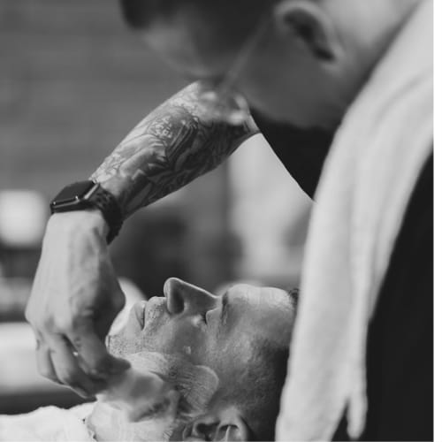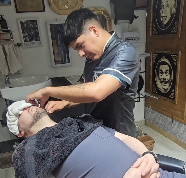El Barbero o Peluquero analiza grosor de vello para determinar que navaja usar, se realiza ritual antiguo con toallas caliente y finaliza con after shave.